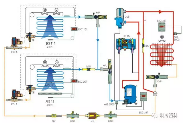 氨制冷系統(tǒng):一般在大型冷凍庫中應(yīng)用。