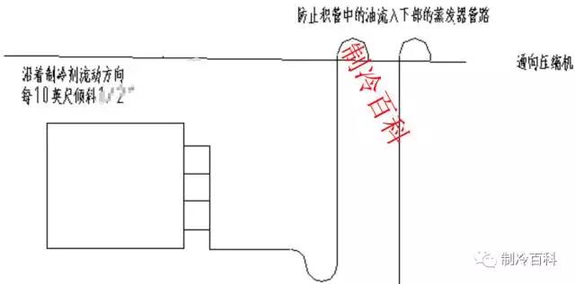 1、水平吸氣管路沿制冷氣流動的方向,要有大于0.5%的斜度。