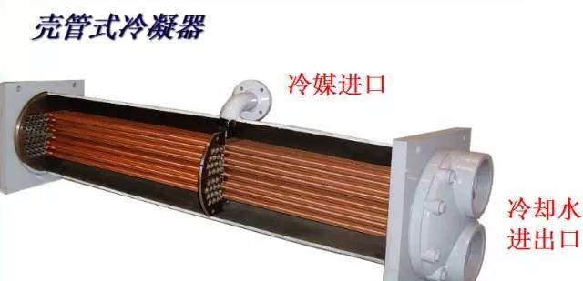 冷凝器:將制冷壓縮機(jī)排出的高溫高壓氣態(tài)制冷劑予以冷卻、使之液化,以便制冷劑在系統(tǒng)中循環(huán)使用 。