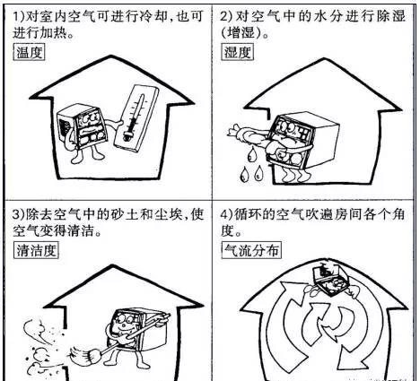 空調(diào)四要素:溫度,濕度,清潔度與氣流分布是所謂空調(diào)的四大要素,對四個要素加以調(diào)節(jié),能夠控制室內(nèi)環(huán)境以達(dá)到舒適的要求。